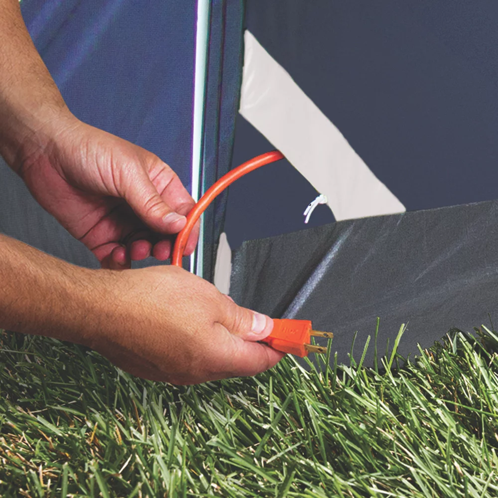 When the sun has set and the fire’s out, you can keep the fun going after it’s dark with a Coleman® Elite Sundome® 6-Person Lighted Tent. Its built-in LED lighting system provides bright, overhead illumination for reading a book or studying a map for the next day’s hike. It also has a nightlight mode to help the kids feel safe as they drift asleep. And because it’s CPX® 6 compatible, you can easily transfer the same power source from a Coleman® CPX® 6 lantern to your tent lighting. If it rains, this tent Keeps You Dry…Guaranteed™, thanks to the WeatherTec™ system, which uses a tub floor with patented corner welds, protected seams, and a covered zipper to help keep water out. Meahwhile, the compact dome shape and a strong frame is tested to withstand 35+ MPH winds. You’ll get even more weather protection from a door awning and an included rainfly. When the temperature heats up, the auto-roll window opens in a snap to let in the comforting breeze. Setup is simple with snag-free, continuous pole sleeves; the patented pin-and-ring system; and snag-free Insta-Clip™ suspension. A front hinged door and a second back door make for easy comings and goings. Inside, there’s enough room to stretch out on two queen-sized airbeds, and storage pockets help to keep small items organized. When it’s time to head home, the tent easily packs up into an expandable carry bag with a rip strip until you’re off on your next adventure.