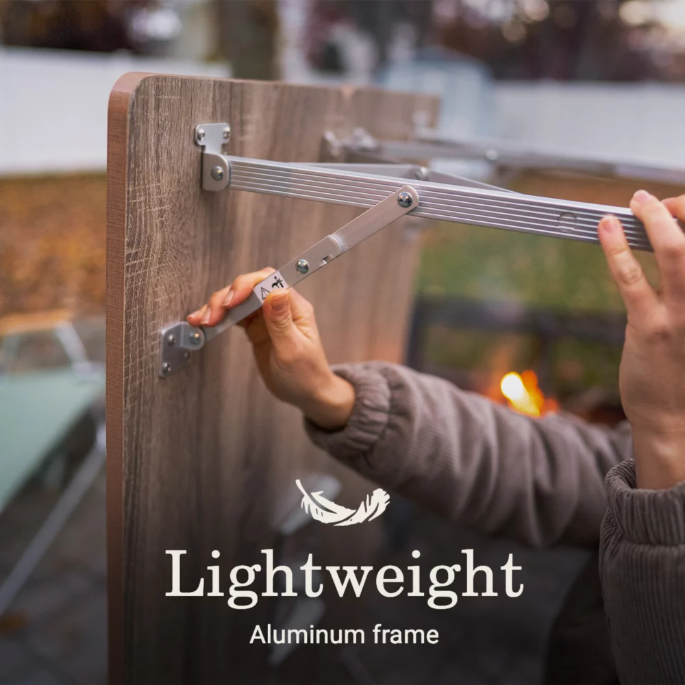 Perfect for the patio or the campsite, the Coleman® Living Collection Folding Table is your go-to for getting together outside. The lightweight aluminum frame makes it easy to move, and the elevated wood-grain finish on the tabletop adds a stylish look to any glamping trip or backyard barbecue. Playing cards near the lake or eating dinner at sunset? Adjust the leg height to low or high—you choose. When you’re done, the foldable table packs easily into an included carry bag for easy storage.