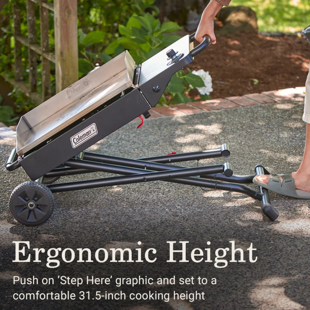 • ERGONOMIC HEIGHT: Pushing on ‘Step Here’ graphic snaps it to a comfortable 31.5 inch cooking height